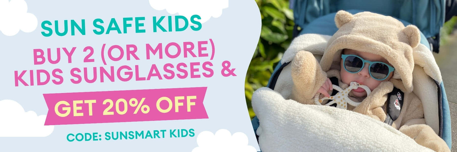 Get 20% Off when you buy 2 or more Kids Sunglasses! Just use code SUNSMARTKIDS at checkout! 🛒